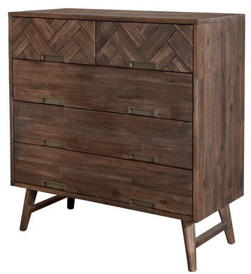 The exclusive wooden furniture from the Ashton series is characterized by elegance, simplicity and functionality. Brass-colored metal handles are a beautiful finish of wooden fronts. The herringbone pattern on the surface of the furniture, as well as solid wooden cone-shaped legs are characteristic details of this extraordinary collection. Thanks to the matte surface, various shades of wood and the simplicity of the shapes, the products blend in perfectly with any interior.
