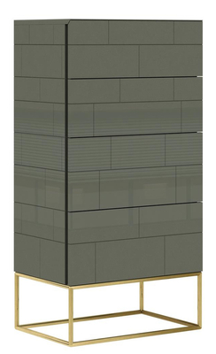 The regular shape of modernist furniture in combination with the 3D front, cement green, as well as a simple gold-colored frame - these are the attributes of Rose Hill products. Thanks to these features, the furniture does not impose too much on the interior, but fantastically emphasizes the colors of the walls, the texture of the parquet and creates a harmonious whole with other furnishings.