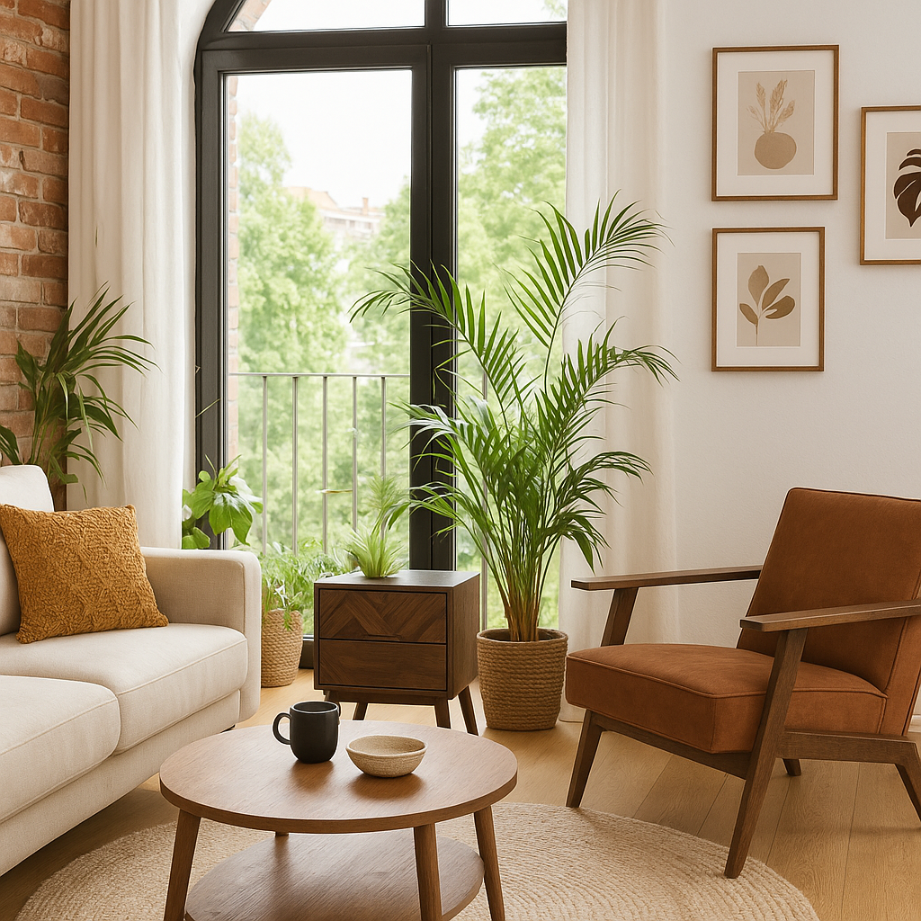 - A solid brushed wood cabinet, evocative of retro, vintage and boho styles, in a beautiful brown colouring with brass-coloured handles. The cabinet is fully wooden and has two drawers including one top drawer with herringbone inlay.