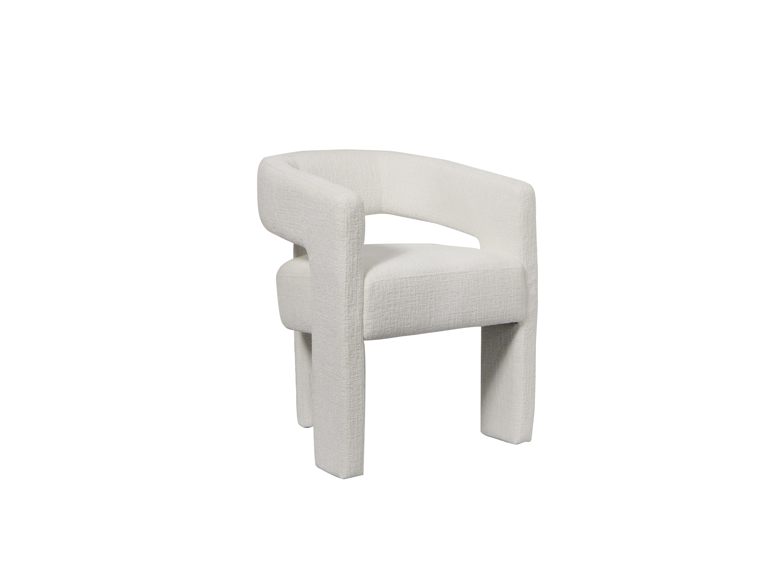 - This elegant white upholstered chair is made of the highest quality chenille fabric. Its simple design, based on fashionable rounded shapes, will enhance any dining room. The set includes a round footrest cushion.