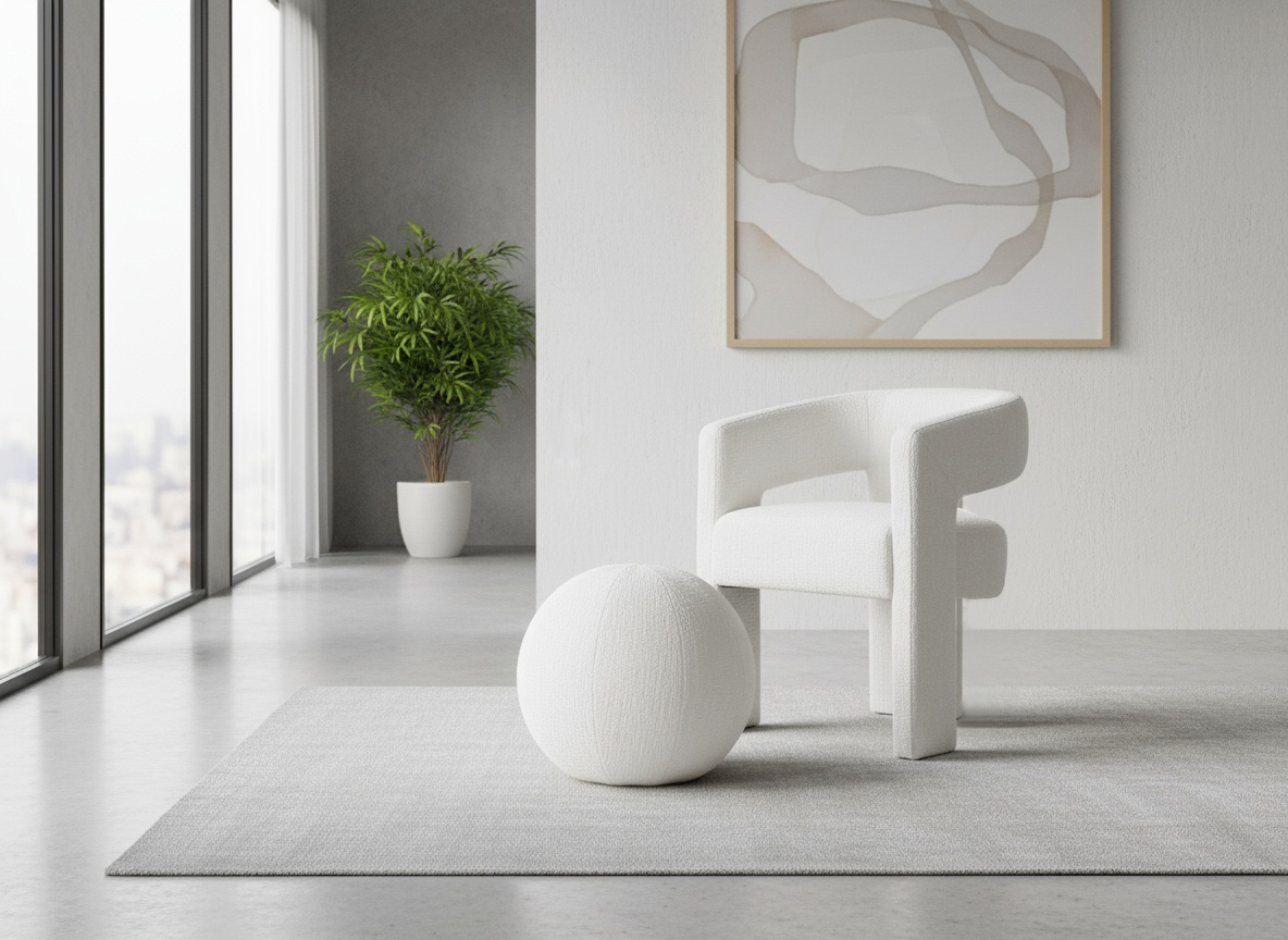 - An elegant pillow made of soft, white velvet in the form of a stylish ball. Its modern, minimalist design will work perfectly as an original decoration for a sofa, armchair or bed. The pleasant to the touch fabric adds coziness and class to the interior.