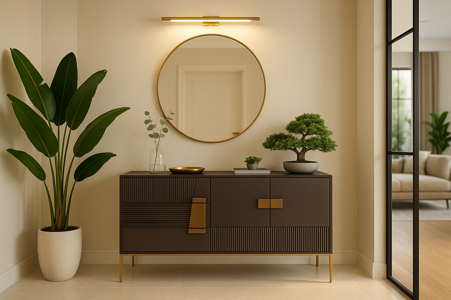- A stylish dark graphite sideboard with gold accents and legs. The simple form of the body is enriched with smooth fronts combined with asymmetric grooves vertically and horizontally.