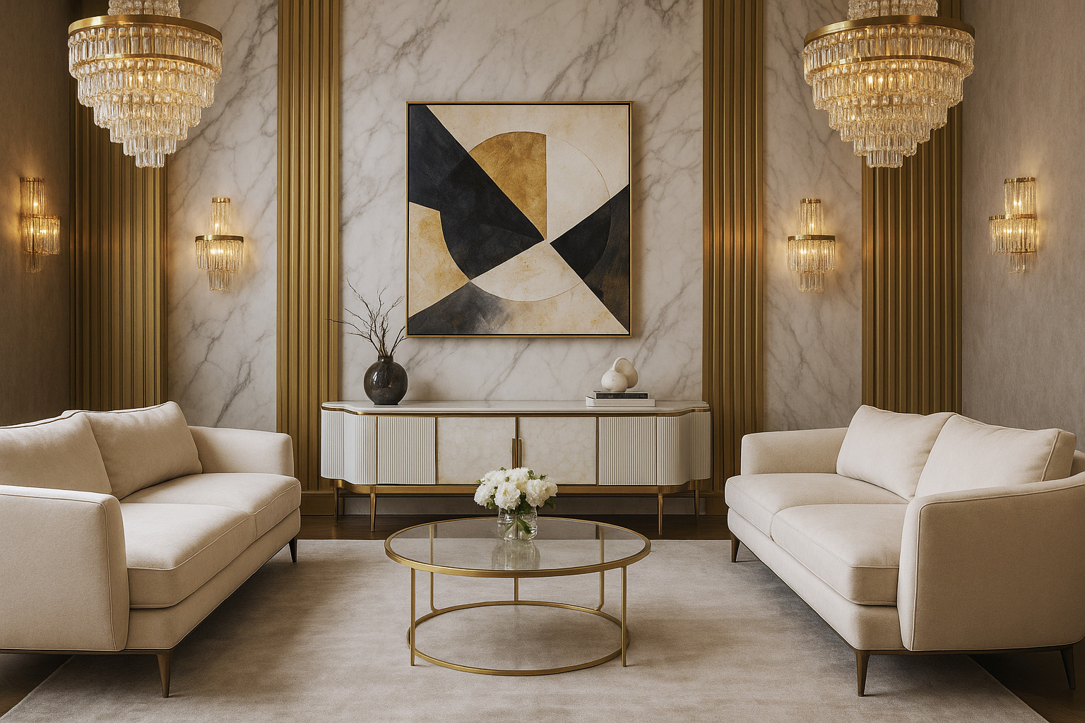 Off-white, white countertop, golden legs and accents