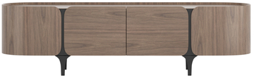 Kolekcja Sileno to meble, które przyciągają swoją prostotą i nietuzinkowymi detalami w postaci obłych krawędzi frontów, uwydatnionych poprzez czarne elementy konstrukcji oraz miękko zaokrąglonych bokach brył. Czarna, metalowa podstawa jest przedłużeniem konceptu formy korpusu i jednocześnie kontrastuje kolorystycznie z ciepłem naturalnego forniru orzecha włoskiego i kaszmirowymi akcentami. Symetryczny podział frontów nadaje kompozycji lekkości oraz charakteru całej serii.