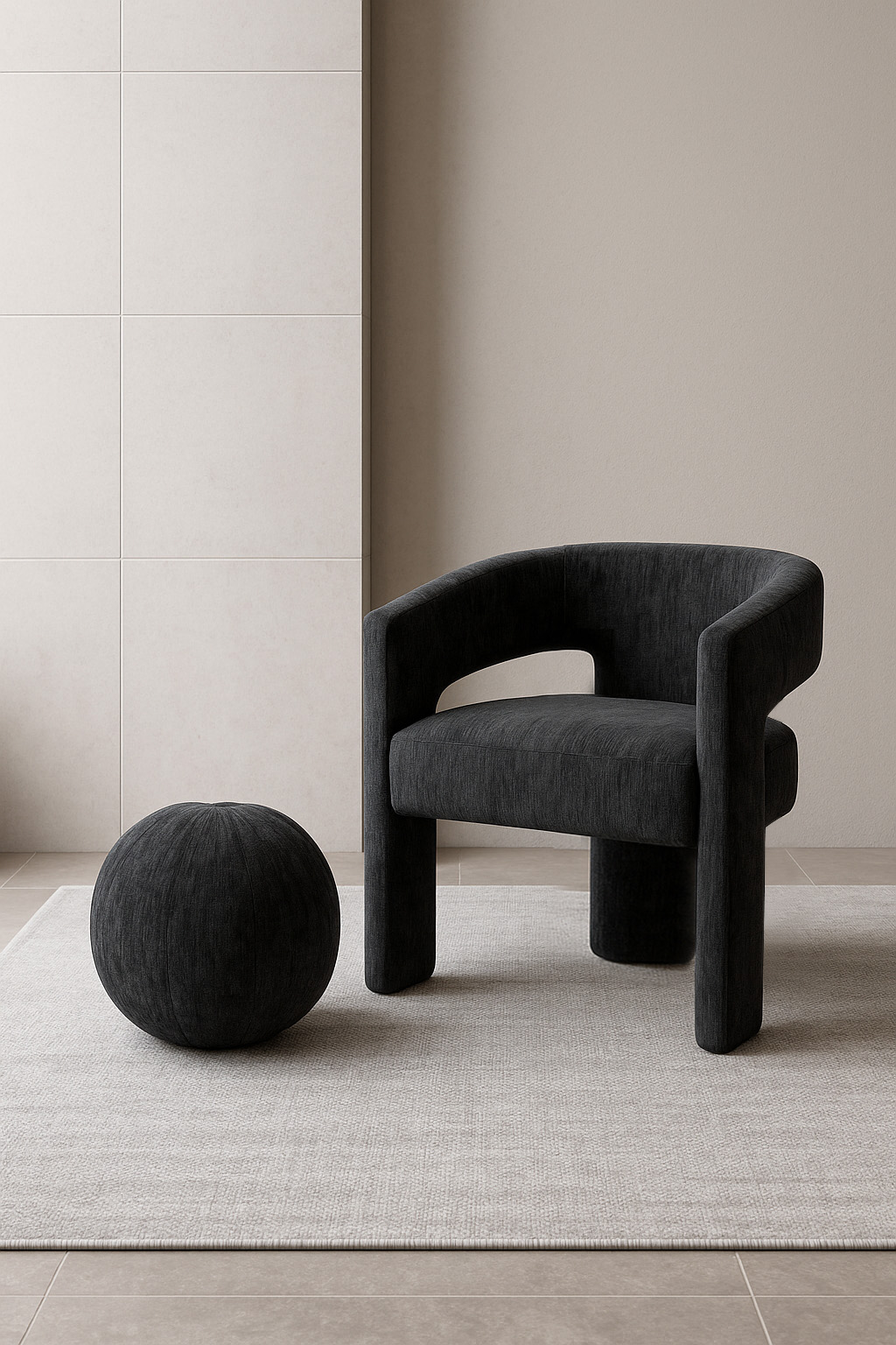 - Elegancka poduszka wykonana z miękkiego, czarnego weluru w formie stylowej kuli. Jej nowoczesny, minimalistyczny design doskonale sprawdzi się jako oryginalna ozdoba sofy, fotela lub łóżka. Przyjemna w dotyku tkanina dodaje wnętrzu przytulności i klasy.