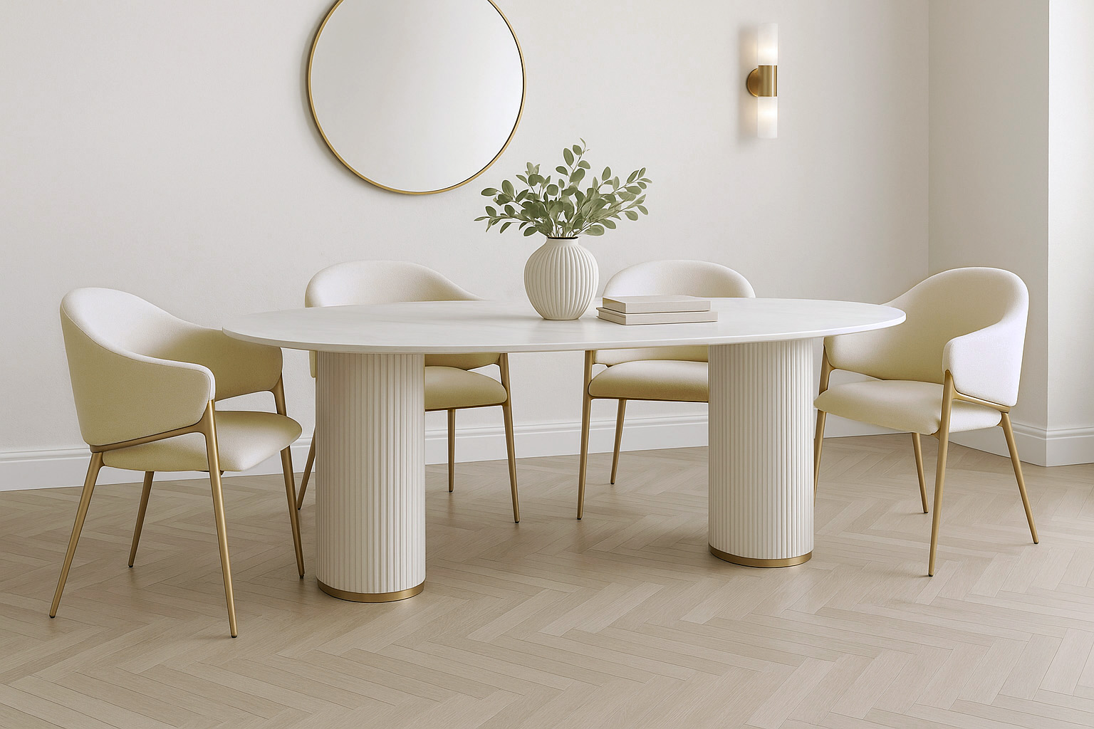 Perłowa biel, złote nogi