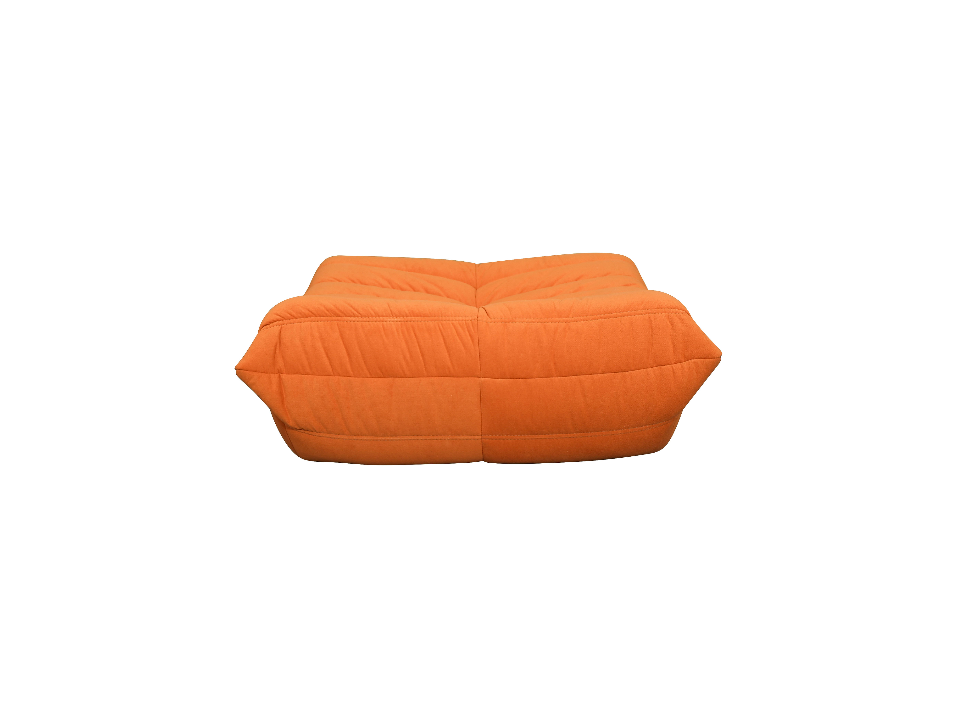 - Nowoczesny puf o prostym kształcie i detalach w postaci poziomego przeszycia z pikowaną środkową pionową linią. Oryginalny, żywy kolor pomarańczowy będzie idealnym dodatkiem do salonu. Podnóżek dedykowany do fotela z tej serii.