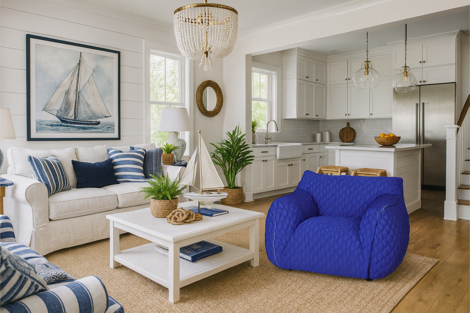 - Nowoczesny, duży fotel o obłym kształcie. Elastyczna tkanina w kolorze chabrowym posiada pikowania na kształt czteroramiennych gwiazd. Fotel wypoczynkowy to połączenie prostej formy z miękkim wypełnieniem z gąbki i oryginalną strukturą materiału.