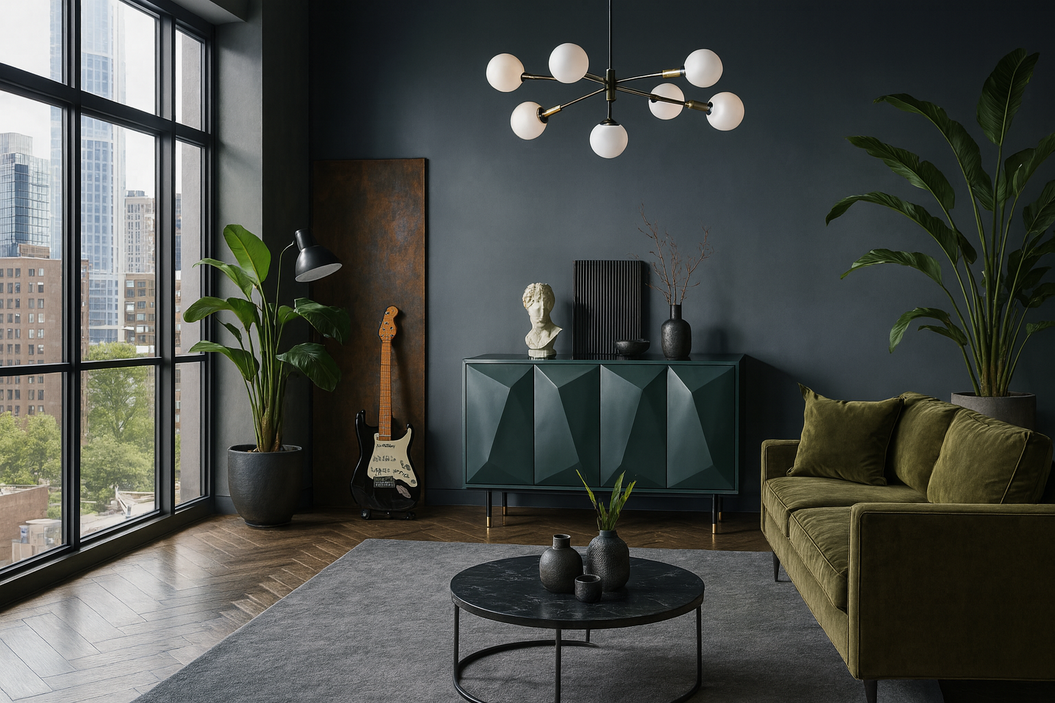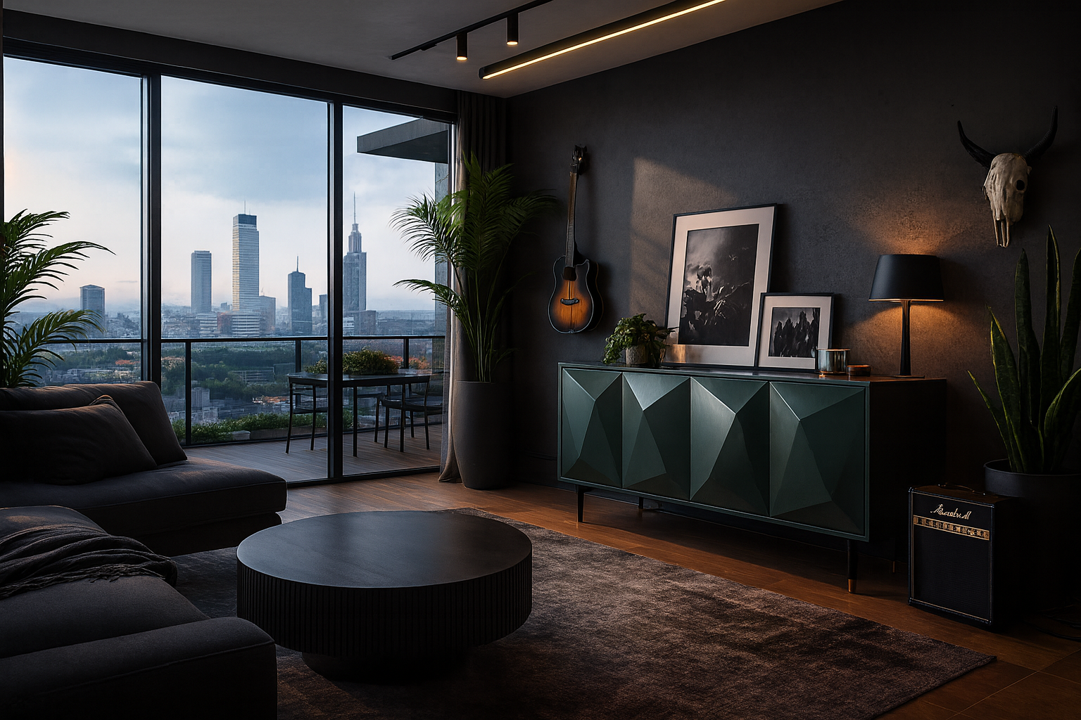 Perłowa zieleń, czarne nogi ze złotym akcentem